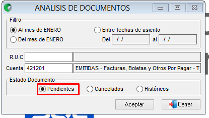 Paso N°2 Se coloca la cuenta por analizar ejemplo:421201