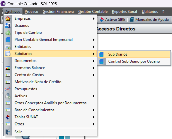 Visualización la siguiente ventana de “SUB DIARIO”